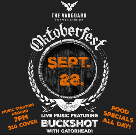 PROST! Come join The Vanguard celebrate Oktoberfest with house-made German food specials ALL DAY and music guests Gatorhead and Buckshot! Raise your beers and cheers! ($10 Door Charge)